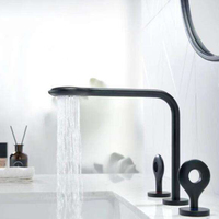 Vòi chậu rửa phòng tắm thác nước hiện đại Phong cách độc đáo Đồng thau nguyên khối 3 lỗ Tay cầm kép có thể kéo ra Thiết kế nghệ thuật thanh lịch